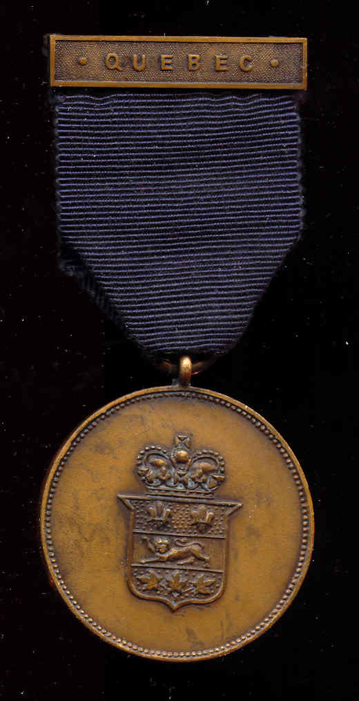 A Quebec issued Lord Strathcona Medal, note Strathcona's bust replaced with Canadian emblem ca. late 1950s