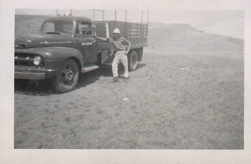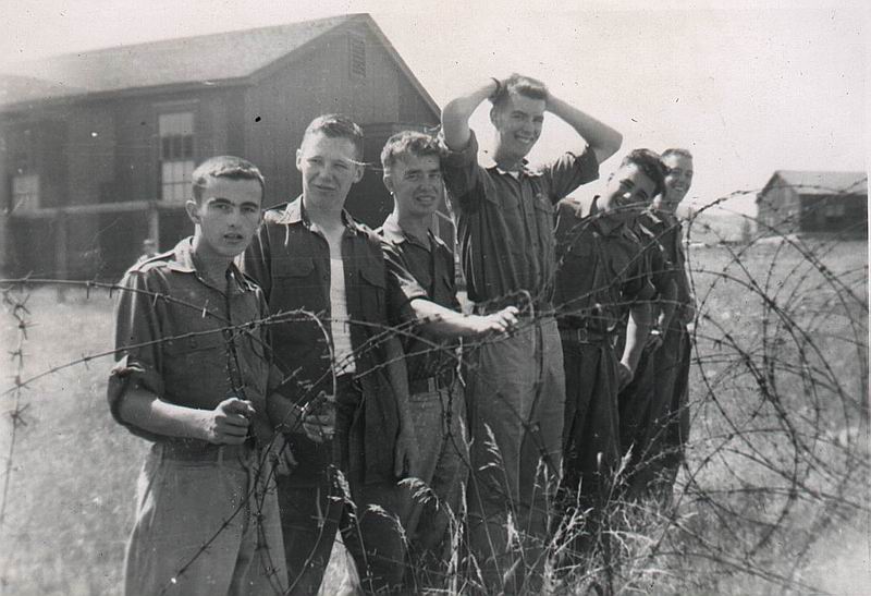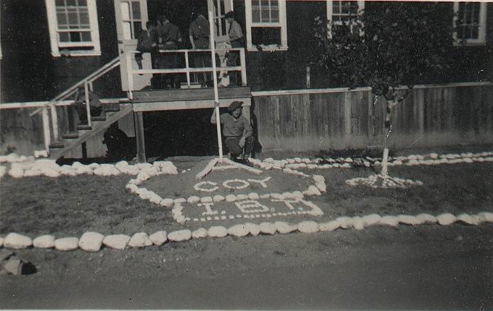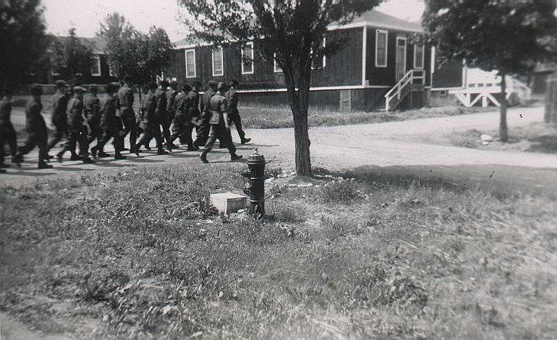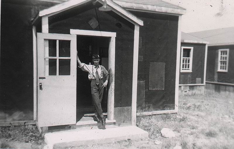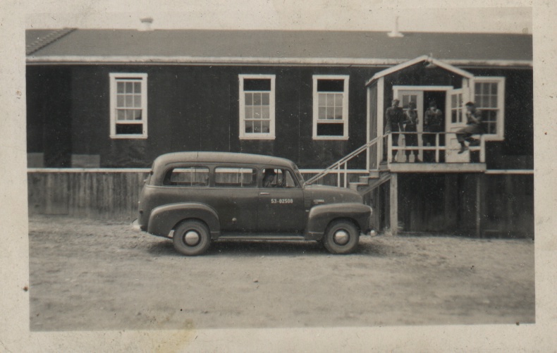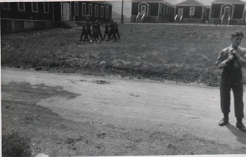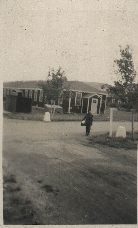B28 Mess hall and B30 barracks in back ground, prior to paved parking lot existing. (Darrell Dean)