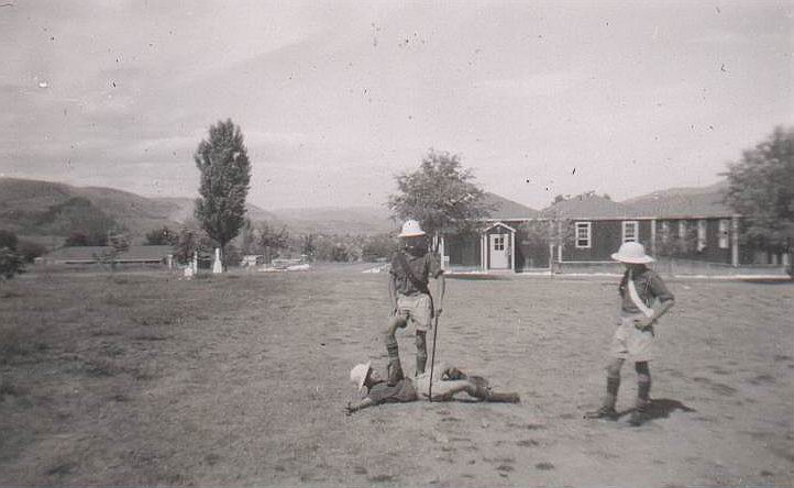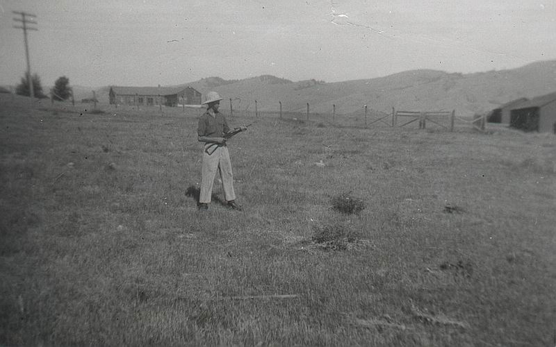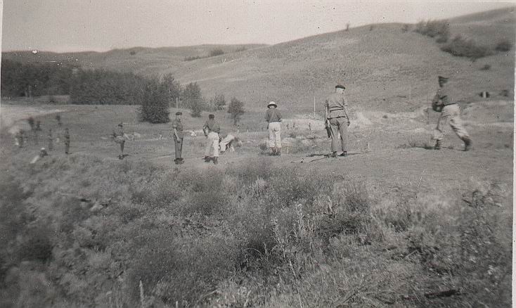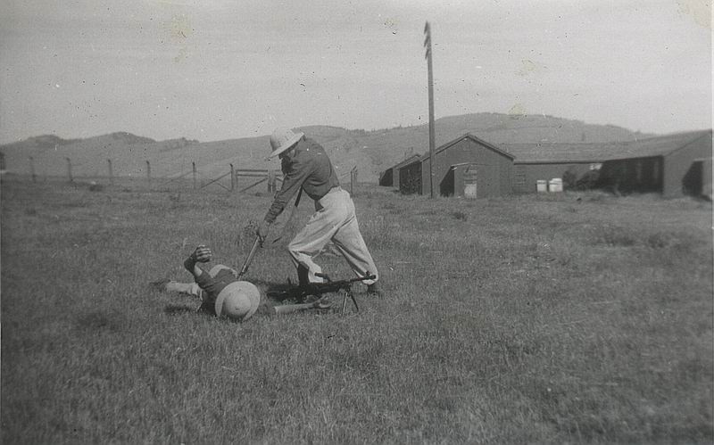 A little fooling around on the IBT Course on the upper hill near with Lee Enfield and Bren Gun, note building D10 barracks in background (Darrell Dean)