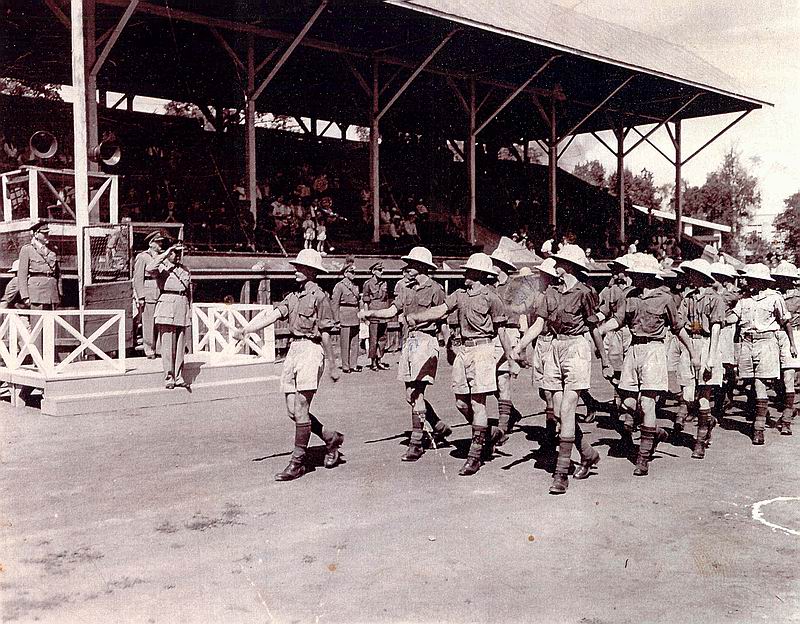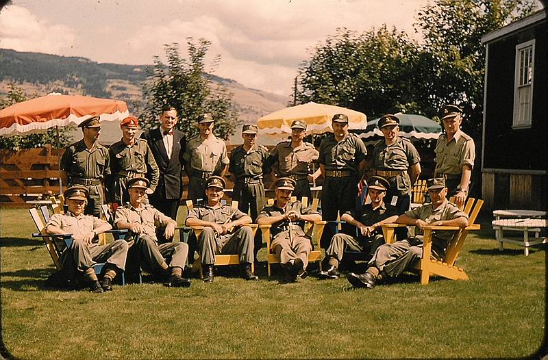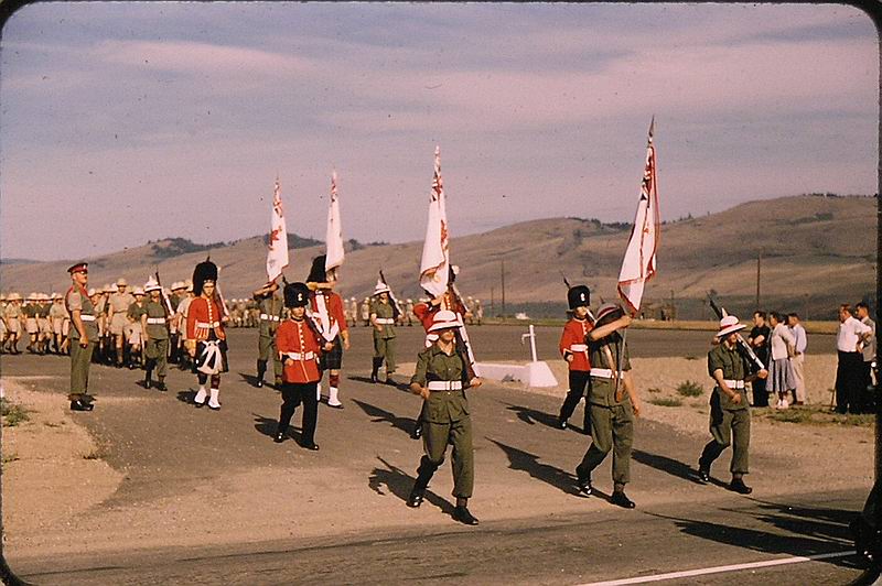 A Coy IBT Wing leading the grad parade in Polson Park, August 21, 1954. MGen Chris Vokes CB CBE DSO CD, GOC Western Command is the reviewing officer (Gary Bosence)