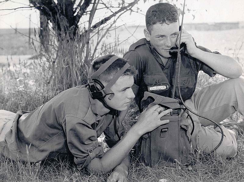 Cdt A.J. Brint and an unidentified cadet using radio (DND)